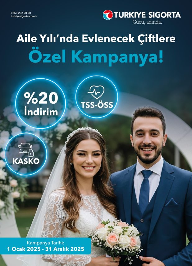 “2025’in Aile Yılı ilan edilmesi, aile kurumuna verilen önemin güçlü bir göstergesidir. Türkiye Sigorta olarak biz de bu vizyonu yürekten sahipleniyor, aileyi toplumsal yapının temel direği olarak görüyor ve bu özel yıla anlam katan kampanyalarla desteğimizi gösteriyoruz. Yeni evli çiftlerin hayat yolculuklarına sağlık ve güven içinde başlamalarına katkıda bulunmak bizim için hem bir sorumluluk hem de bir gurur kaynağı. Türkiye Sigorta olarak biz de ülkemize, milletimize ve bizi tercih eden milyonlara duyduğumuz güvenle, Türkiye’nin dört bir yanındaki ailelerin yanında olmaya devam edeceğiz.”