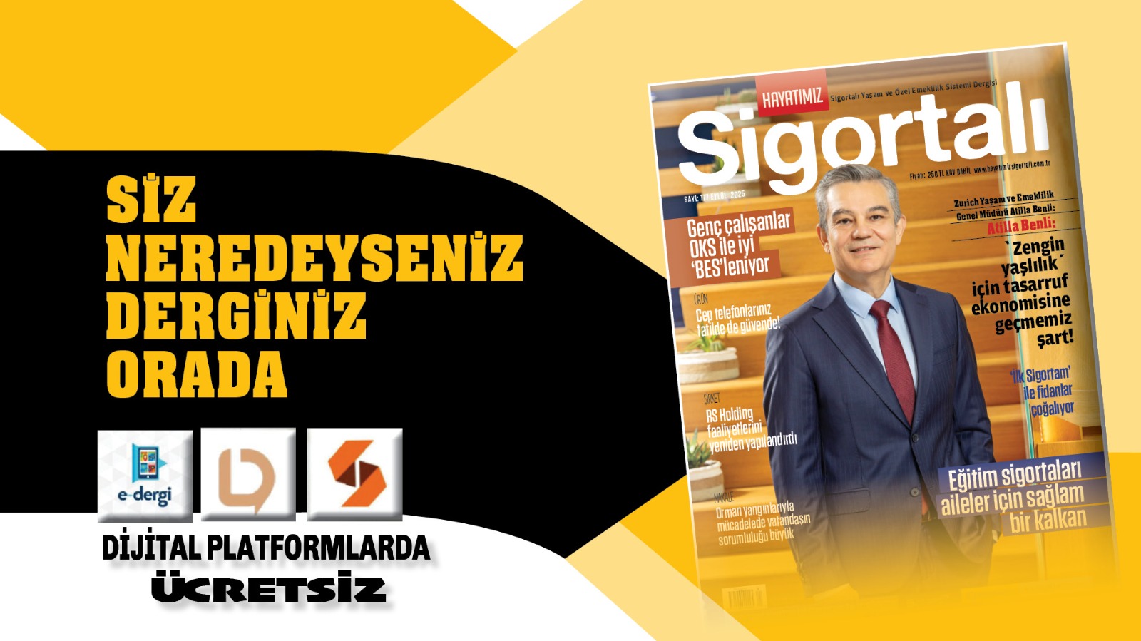 Hayatımız Sigortalı Dergisi’nin eylül sayısını siz değerli okuyucularımıza ulaştırdığımız için büyük mutluluk duyuyoruz. Derginizin bu ayki kapağında, sektörün sevilen isimlerinden, Zurich Yaşam ve Emeklilik Genel Müdürü Atilla Benli yer alıyor. Bireysel Emeklilik Sistemi (BES) ve Zurich Yaşam ve Emeklilik’le ilgili sorularımızı yanıtlayan Benli, daha iyi bir yaşlılık için topluma da önemli mesajlar verdi. Türkiye’de yaşlanan kesimin daha iyi koşullarda yaşaması için tüketim ekonomisinden tasarruf ekonomisine geçişin şart olduğunu vurgulayan Benli, “Bireyler, sadece 1 ayda sigaraya ödedikleri parayı BES’e katkı payı olarak ödese her şey çok farklı olur” diyor. Benli ile yaptığımız röportajın ilginizi çekeceğini düşünüyoruz. Sigortamedya Genel Yayın Yönetmeni Can Kantar da “Keyifler yerinde, koltuklarıma yaslanma zamanı!” isimli editör yazısında sektördeki son gelişmeleri kaleme aldı; özellikle de sigorta şirketlerinin kârlılık açıklamalarına kritik bir gözle yaklaştı.