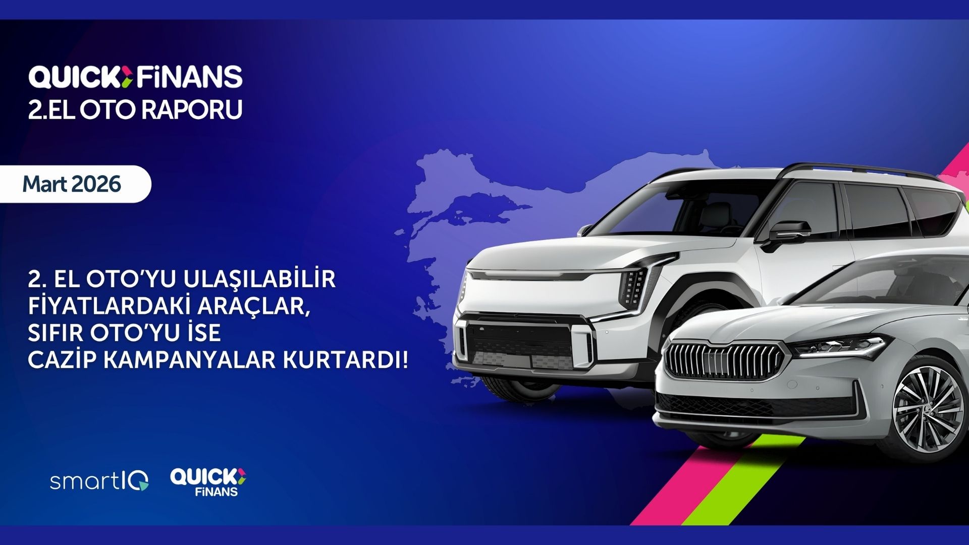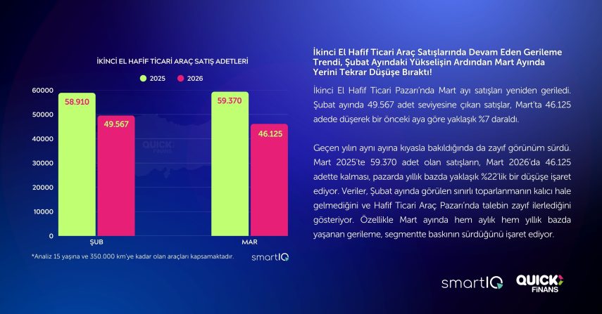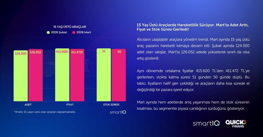 Quick Finans ve SmartIQ iş birliğiyle hazırlanan Mart 2026 raporu, otomotiv pazarında dalgalı görünümün sürdüğünü ortaya koyarken; ikinci elde uygun fiyatlı araçların öne çıktığını, sıfır araçta ise kampanyaların belirleyici olduğunu gösterdi.